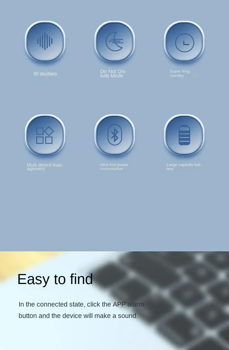 Simply tap a button in the app, and the device emits a sound, helping you instantly find lost items. No more frantic searching—locate keys, bags, or valuables with ease. -